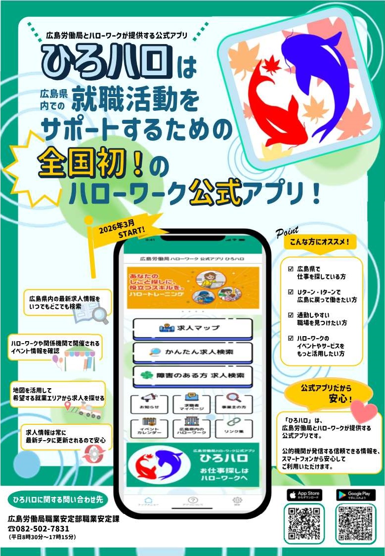 全国初! 広島労働局・ハローワーク公式アプリ 「ひろハロ」